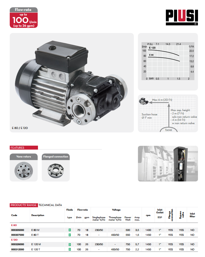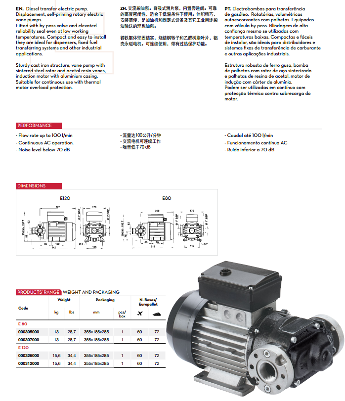 詳細說明: E80 - E120 交流柴油泵。自吸式滑片泵,內置旁通閥。可靠的高度密閉性,適合于低溫條件下使用。體積精巧,安裝簡便,是加油機和固定式設備及其它工業用途柴油輸送的理